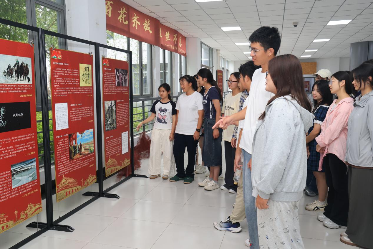 校长俞安平、书记王军、副校长王薇、校长助理孟琪璐等领导出席了开幕式。王军书记致开幕词,俞安平校长发表了热情洋溢的讲话,他充分肯定了本次展览是对全校师生进行爱国主义教育的生动教材,是学校深化五育融合模式的一次创新实践。