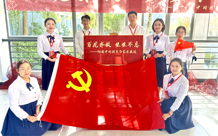 2025年10月11日,教师教育学院学生党支部组织党员及入党积极分子,担任“百花齐放 生生不息——76载中国图景与艺术表达”主题艺术展览的讲解员,以专业素养和青年担当助力校机关党员教师顺利观展,在实践中深化党性修养与服务意识。