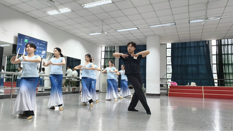 本次课程融合理论讲解、动作示范、分组练习与成果展示等多种教学方法,关晨雨老师注重师生互动,鼓励学生在实践中深化理解。课程还将思政教育有机融入专业教学,引导学生在艺术学习中增强对多元一体中华文化的认同。关老师在课程总结中表示:“民族舞蹈是中华文化宝库中的瑰宝。通过跨民族舞蹈的学习,我们能更深刻地理解中华民族的丰富性与多样性。”