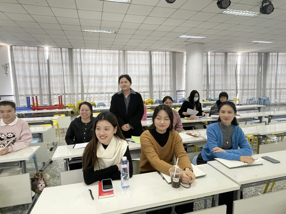 研讨中,教师们围绕如何系统提升学生的故事表演能力展开了热烈讨论。学前理论教研室谢方圆老师认为,故事表演能力是幼儿教师综合素养的重要体现,需要理论课程与技能课程协同发力。她提出,理论类课程如《儿童文学》及各领域活动设计课程应提供内容框架与叙事逻辑,而技能类课程如《幼儿教师口语》《戏剧表演》等则需强化表达与演绎技巧,共同构建学生的“表演素养”。艺术教研室罗华老师回应表示,艺术类课程将重点围绕肢体表达、情境创设和即兴表演等方面展开教学,与理论课程形成互补,共同提升学生的综合表现力和活动组织能力。
