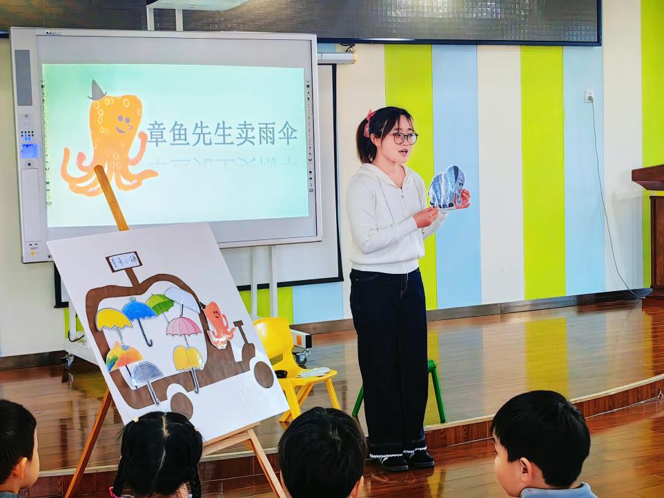 展示环节中,三位实习生分别带来了精彩的教学活动:金云善组织的大班音乐活动《捏面人》,生动有趣,充分调动了幼儿的参与热情;王婷婷执教的中班语言活动《章鱼先生卖雨伞》,环节清晰,语言富有感染力;魏梦情设计的小班科学活动《吹泡泡》,贴近幼儿生活,激发探索欲望。三个活动均体现出实习生扎实的专业基础与良好的课堂组织能力。