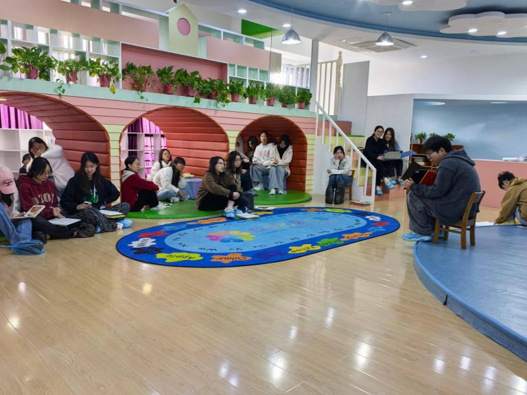 近日,教育学院学前教育专业241、242班同学在《儿童文学》课程实践教学环节中,分批走进校内五色花育儿园绘本馆,开展情境化学习活动,实现理论课堂向真实教育场景的有效延伸。