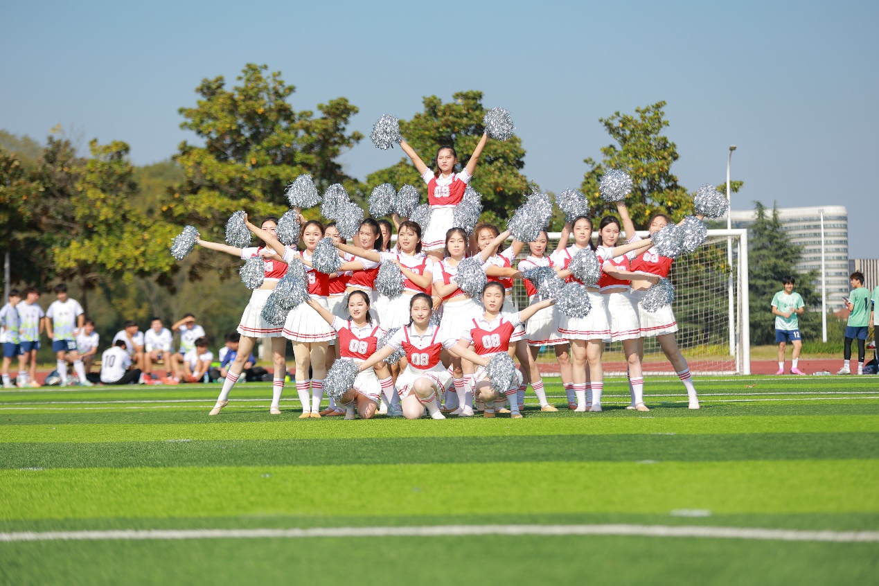 金融学院队与会计学院队巅峰对决中场休息间,伴随着动感的节奏,同学以整齐划一的动作、富有创意的队形设计和极具感染力的笑容,完美诠释了青春的热情与活力。这支精心编排的啦啦操不仅展现了同学们扎实的艺术素养,更体现了同学们团结协作、追求卓越的风貌。