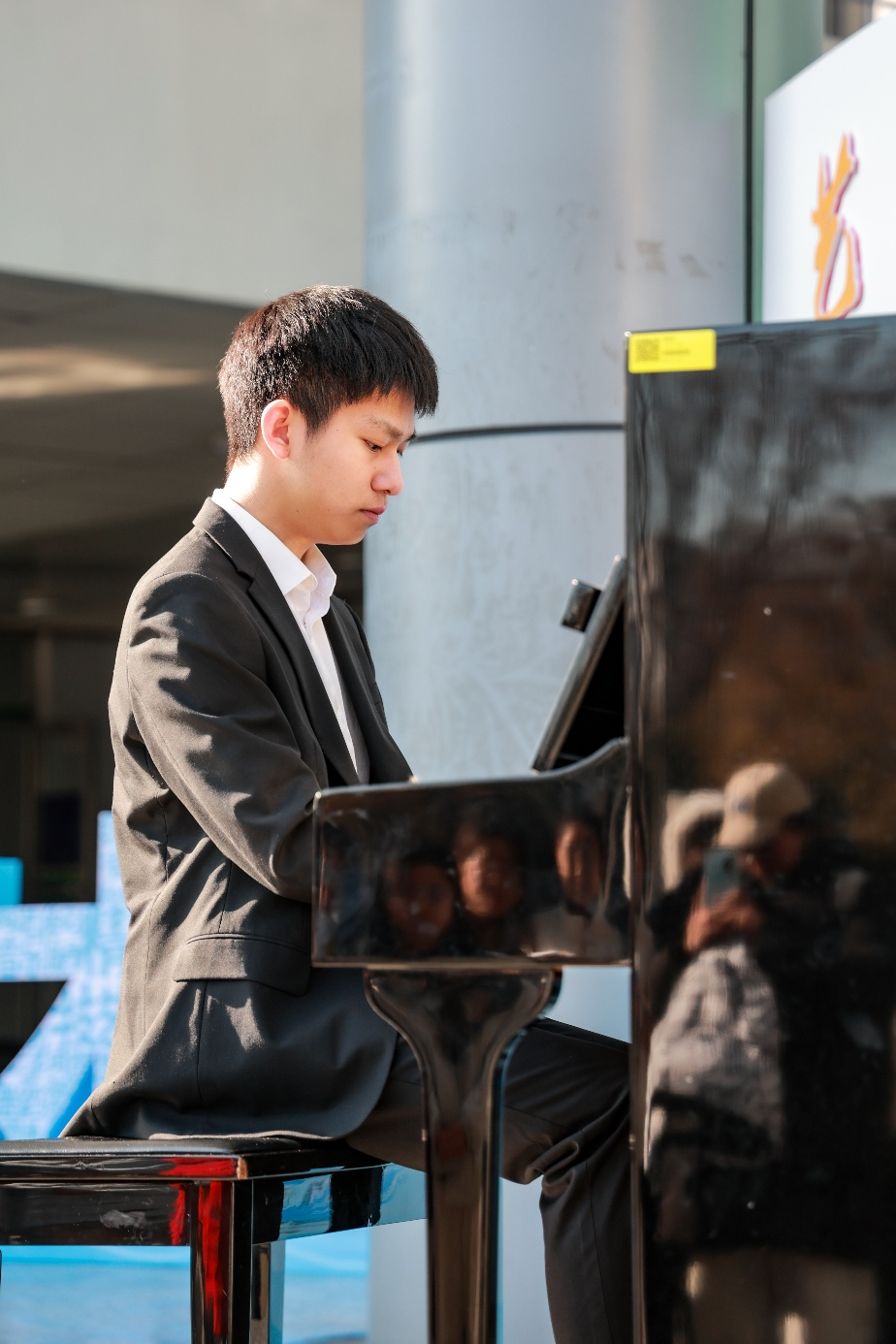 钢琴独奏环节中,学生们依次登台诠释了多首经典曲目。琴声时而庄严深沉,时而灵动悠扬,在黑白键的起伏之间,流淌出对美好未来的憧憬与对广阔世界的向往。期间穿插进行的合唱表演,先后演绎了《大梦想家》《我们的明天》等富有时代气息的作品。歌声饱含深情,既有对祖国的诚挚礼赞,也洋溢着青春的理想与活力,展现出当代青年胸怀远方、砥砺前行的精神风貌。