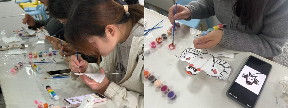 活动现场,处处尽显专注与活力。同学们以彩纸为帛、竹骨为架、丝线为引,将春分“昼夜均分、万物复苏”的节气精髓融入创作。大家在剪、贴、绘、扎的一步步操作中,沉浸式感受传统手工制作的乐趣与春分节气的文化内涵。