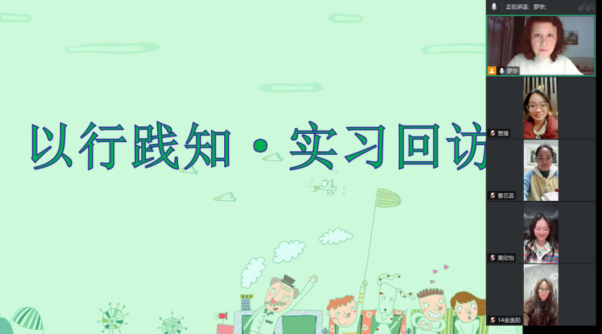 回访过程中,指导教师与实习生逐一连线,详细了解学生在园实习状态、日常教学工作开展情况及遇到的实际问题。实习生依次分享了近期组织的集体教学活动、区域活动、游戏活动等实践成果,汇报了活动目标制定、教案撰写、教具准备、活动组织与活动反思等环节的心得体会。